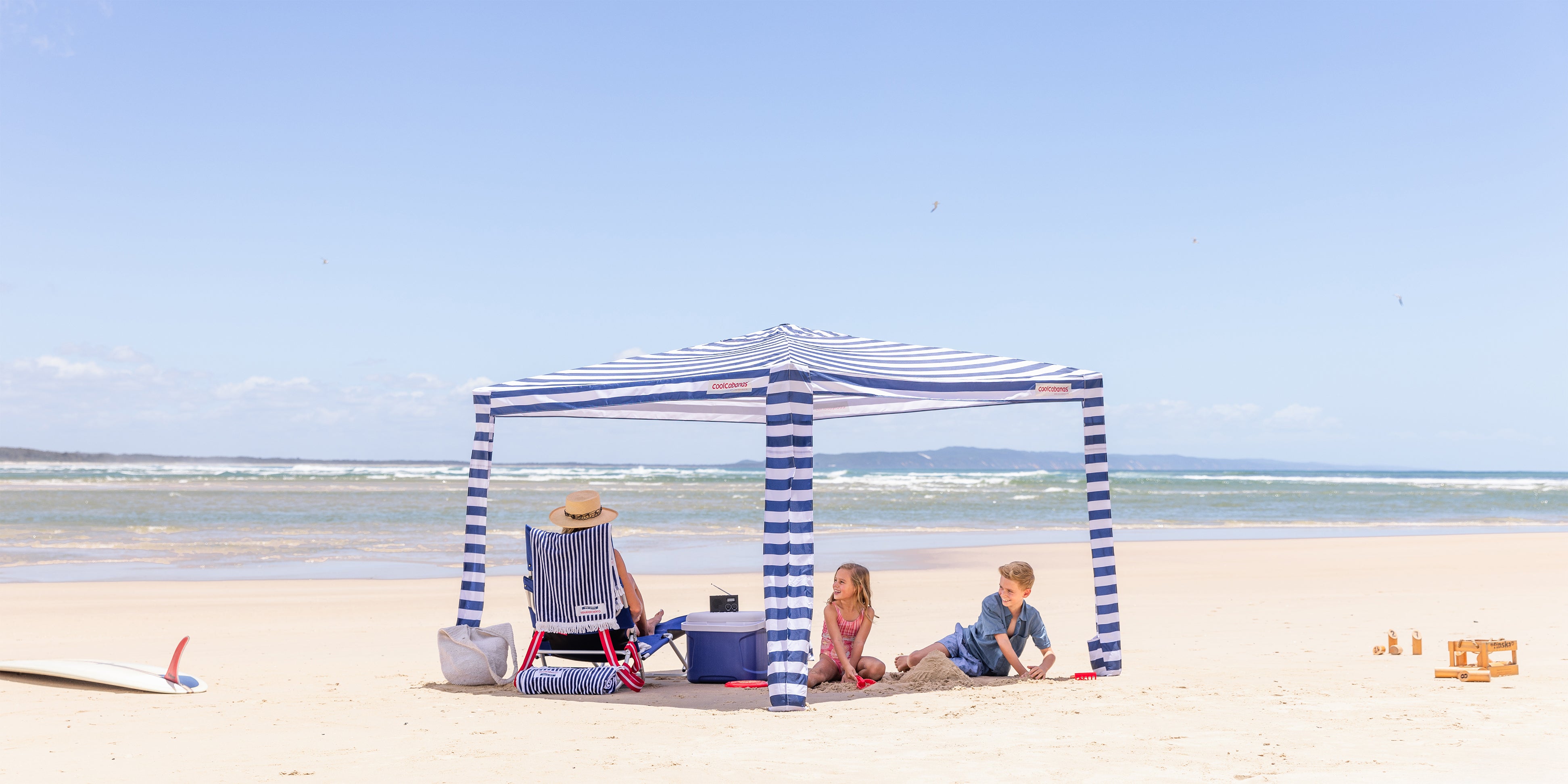 Meet your CoolCabana. Built for beach lovers like you, to help you enjoy the beach effortlessly, without leaving feeling like you've just aged 10 years. Perfect for families and groups, the CoolCabana can be set up in less than 2 minutes and is strong in the wind.